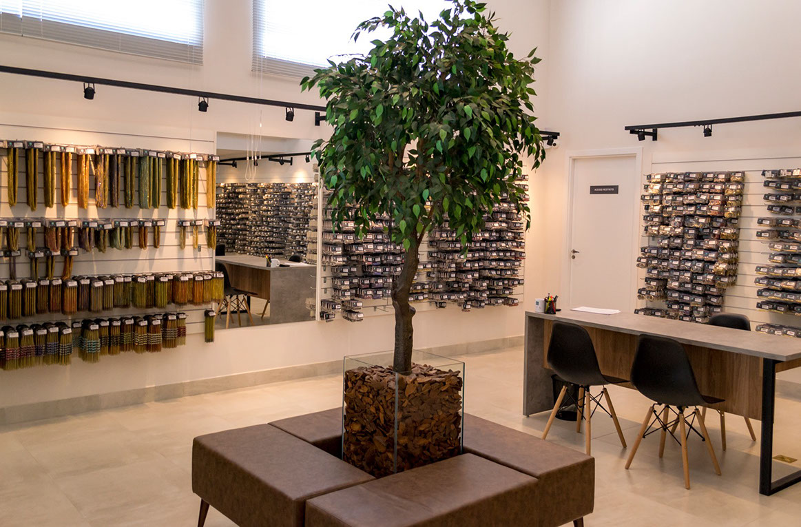 Loja com espaços dedicados a cada etapa do processo de compra.